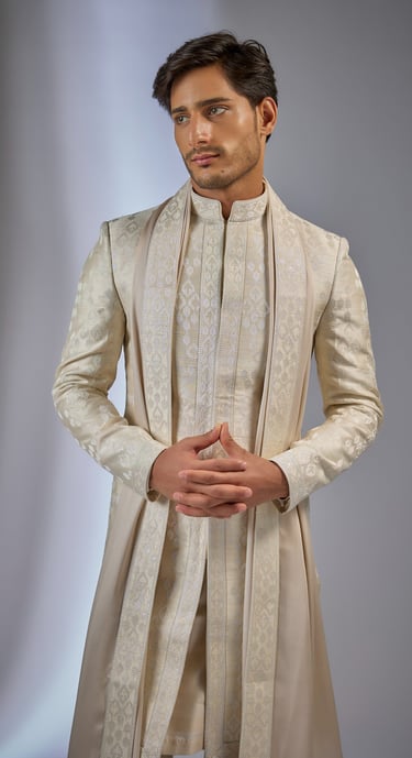 Immerse yourself in the seamless fusion of traditional and contemporary fashion, creating an unforgettable impression on your special day with Reptilia By Salil Bhatia's extraordinary collection.